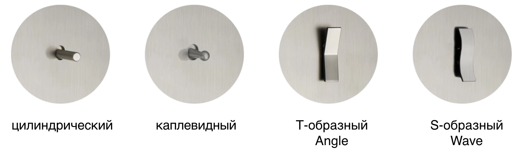 4 эргономичные исполнения тумблера: цилиндрический, каплевидный, Т-образный и S-образный.