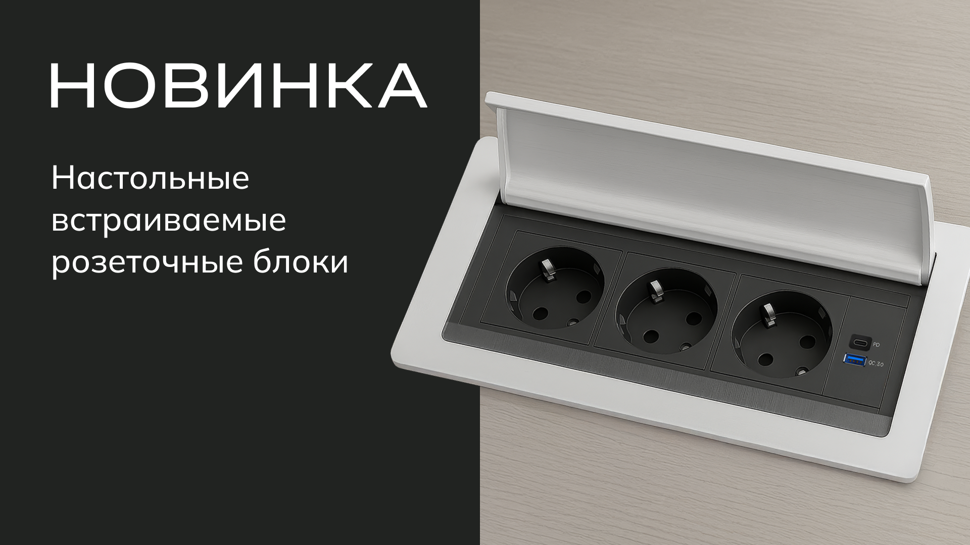 Новинки продукции Donel - новый тип настольных розеточных блоков. Настольные встраиваемые розеточные блоки с откидной крышкой DDSB8HLEAL и DDSB8HLEB — решения для организации подключения к электропитанию в открытых офисных пространствах, комнатах переговоров, конференц-залов и гостиничных номеров.