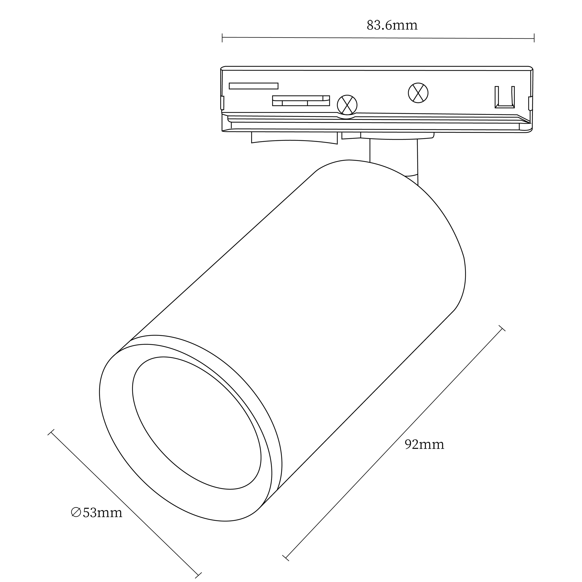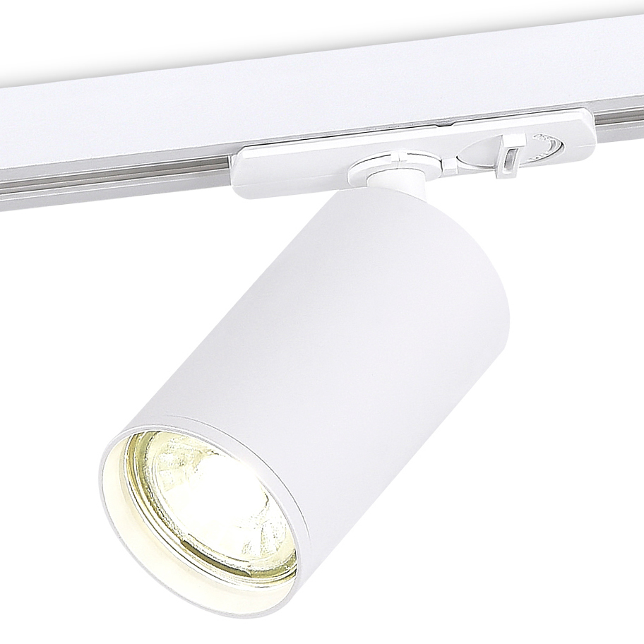 Светильник для однофазного шинопровода под LED-лампу с цоколем GU10, D52хH90мм, поворотный, IP20, без лампы, цвет - белый