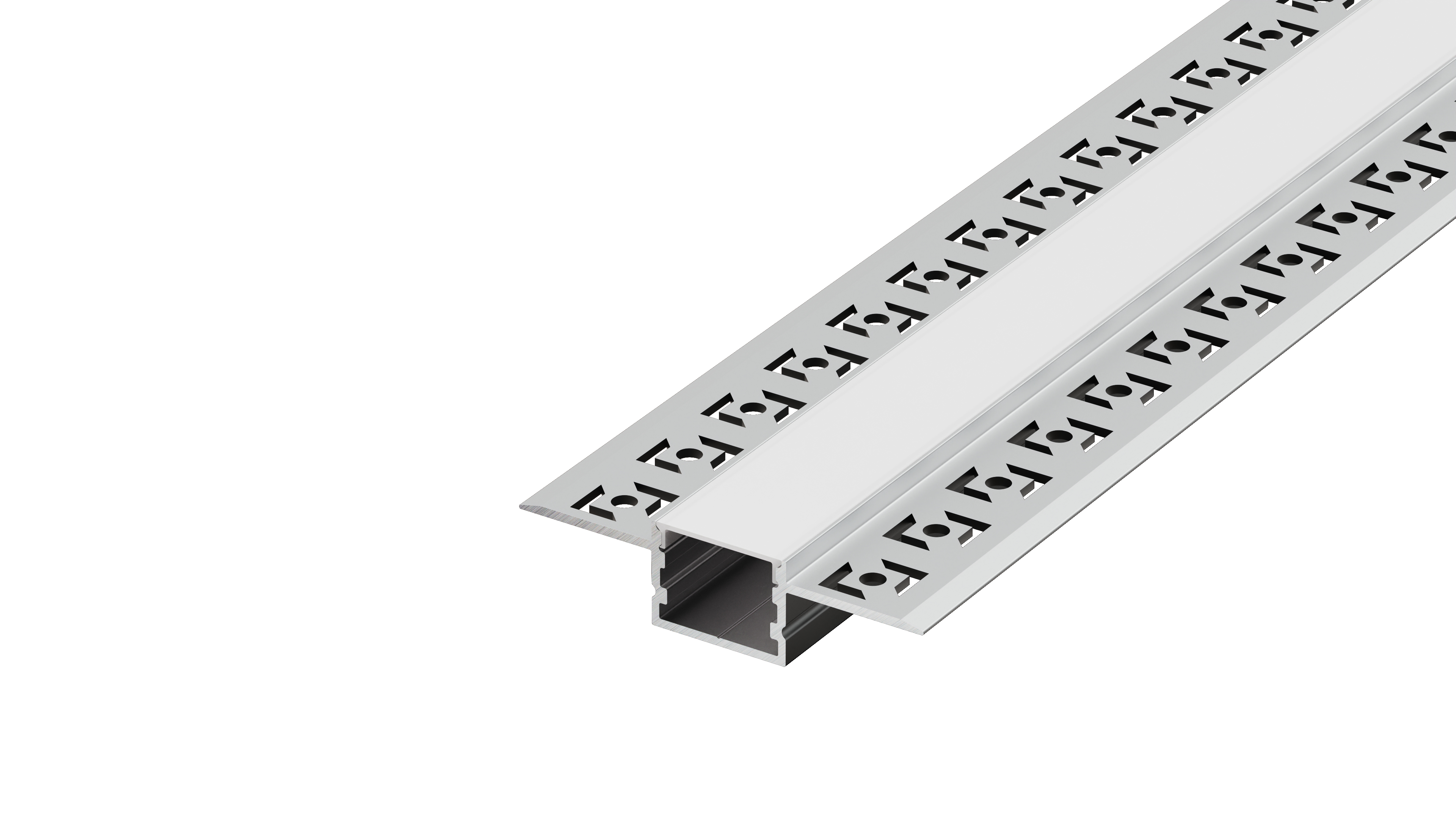 Встраиваемый алюминиевый профиль под шпаклевку, сечение 60,3х15мм, длина 2 метра, в комплекте матовый экран, 4 торцевые заглушки, цвет анодированный алюминий