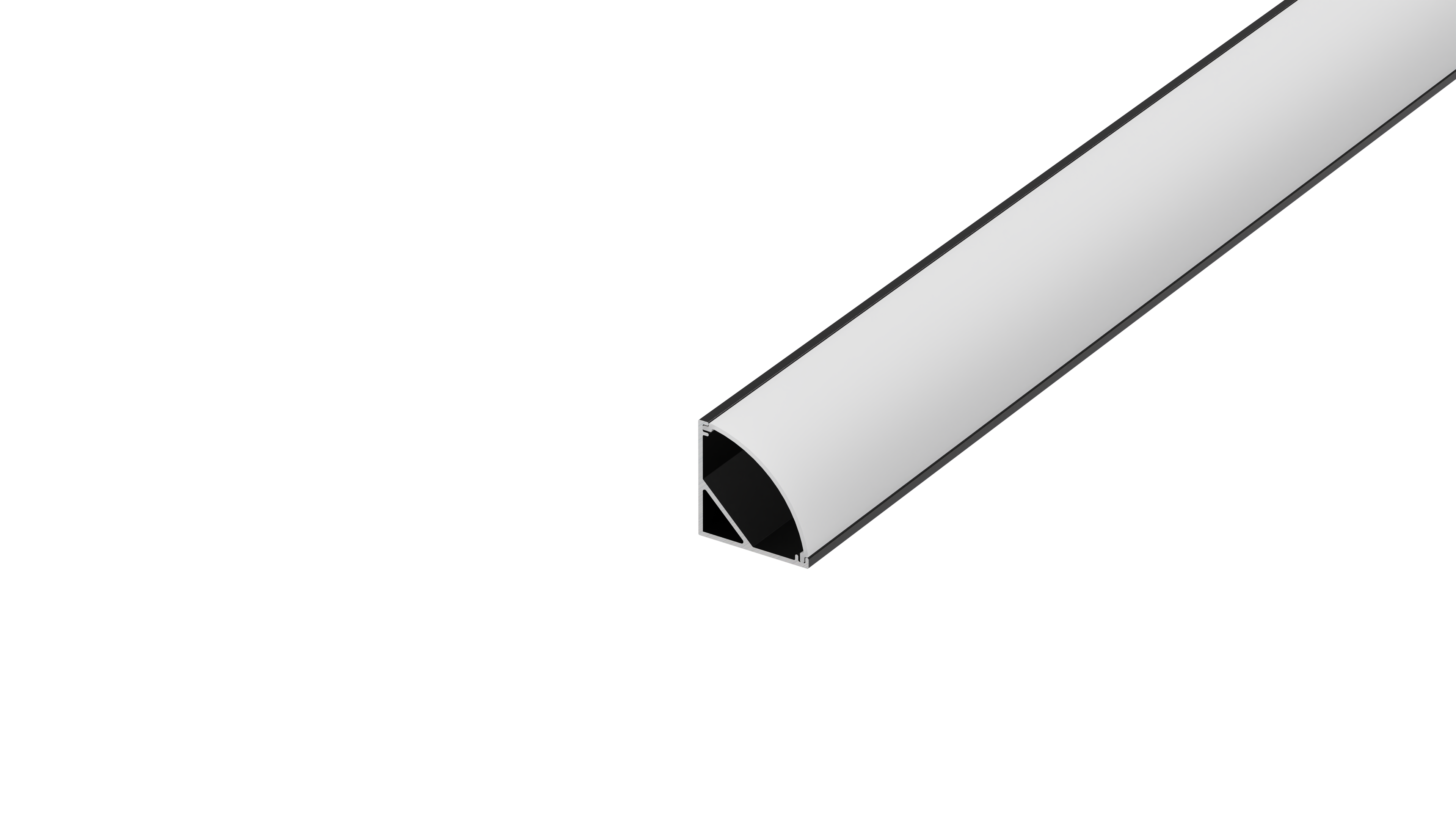 Угловой алюминиевый профиль, сечение 15,8х15,8мм, длина 2 метра, в комплекте матовый экран, 4 торцевые заглушки, 4 крепежа, цвет черный