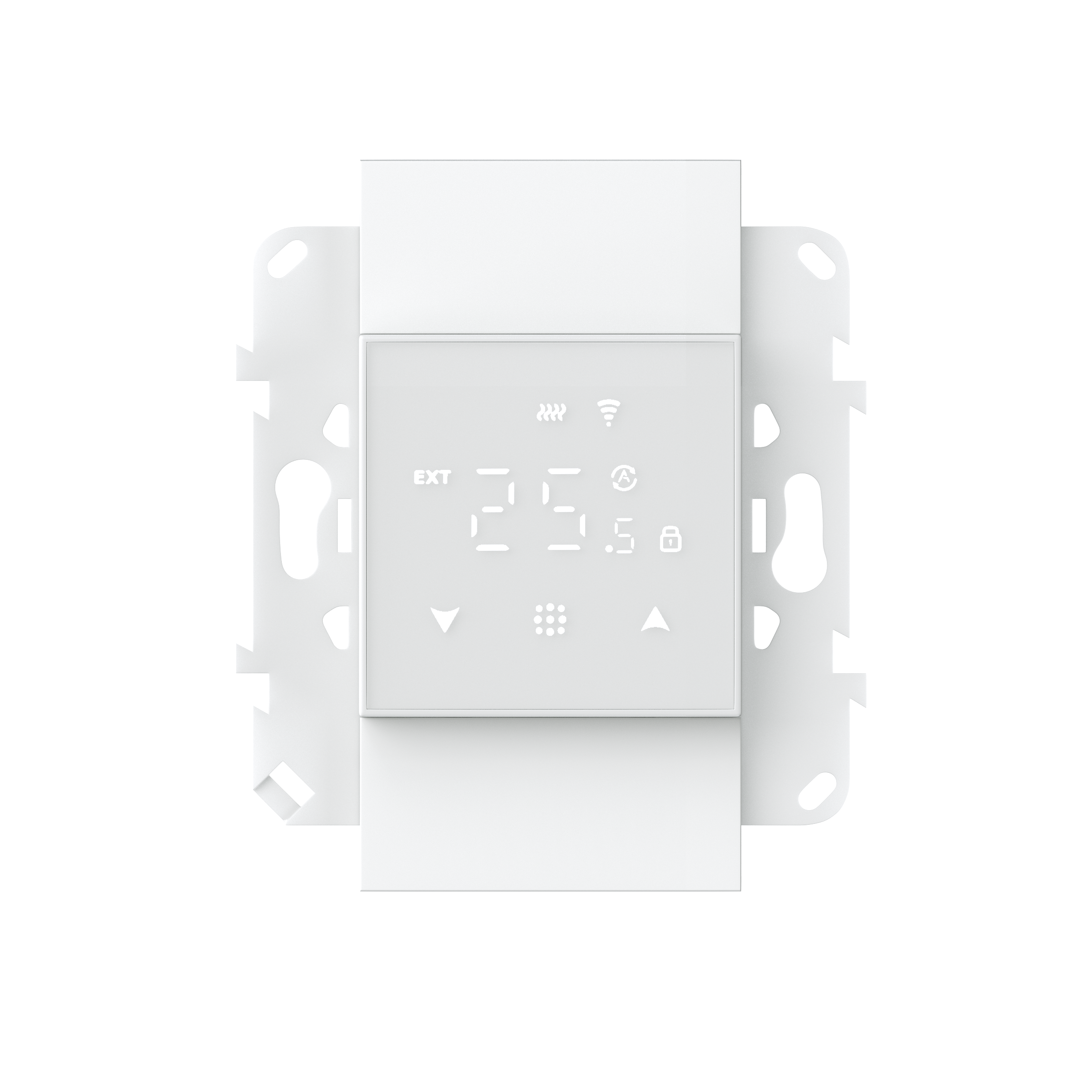 Термостат для ТП с 2-мя датчиками, Wi-Fi, дисплей стекло белое 45х45, 16А, в сборе с суппортом, цвет белый матовый