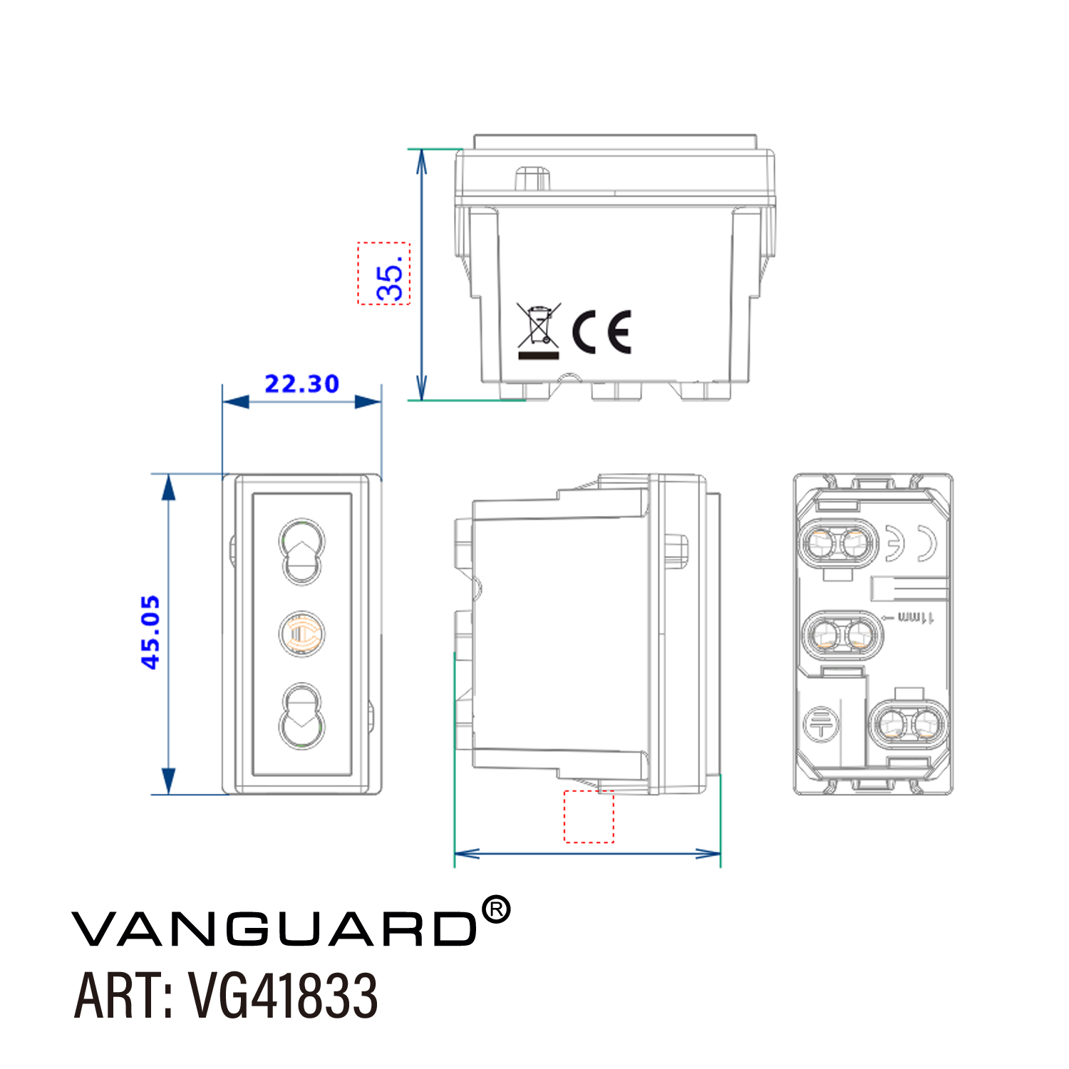 Vanguard Valero Розетка итальянского стандарта для вилок 2К 16А 1 модуль, Белый