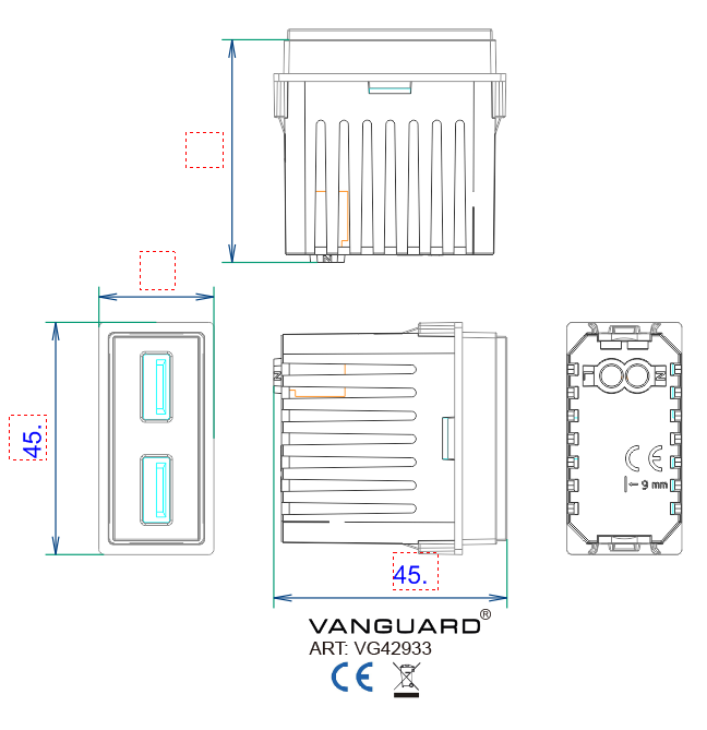 Зарядное устройство USB A-A от Vanguard Valero комбинирует в себе компактность и производительность. Выходное напряжение 5V и ток до 2100 мА позволяют быстро заряжать гаджеты, от смартфонов до планшетов. Занимая всего 1 модуль, устройство легко монтируется в любые системы. Белый цвет гармонично сочетается с любым интерьером, добавляя стиль.