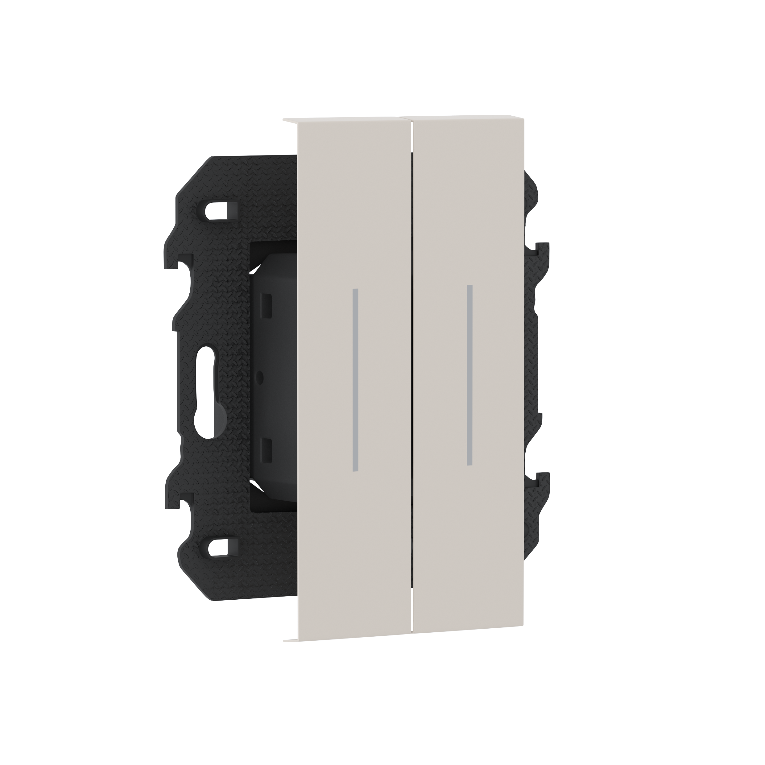 Выключатель 2-х клавишный проходной, 10А, винты, в сборе с суппортом, цвет песочный матовый