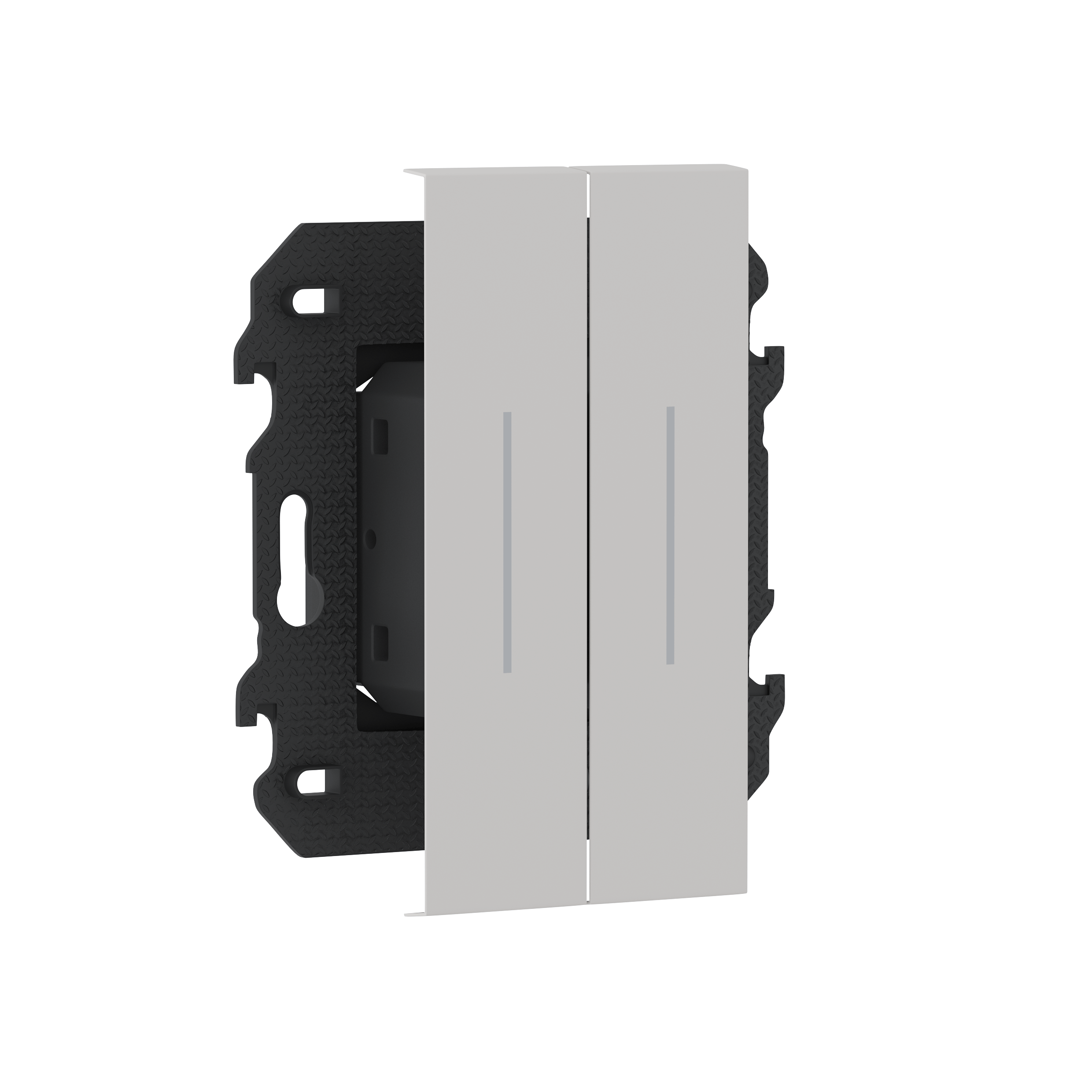 Выключатель 2-х клавишный проходной с белой подсветкой, 10А, винты, в сборе с суппортом, цвет серый матовый