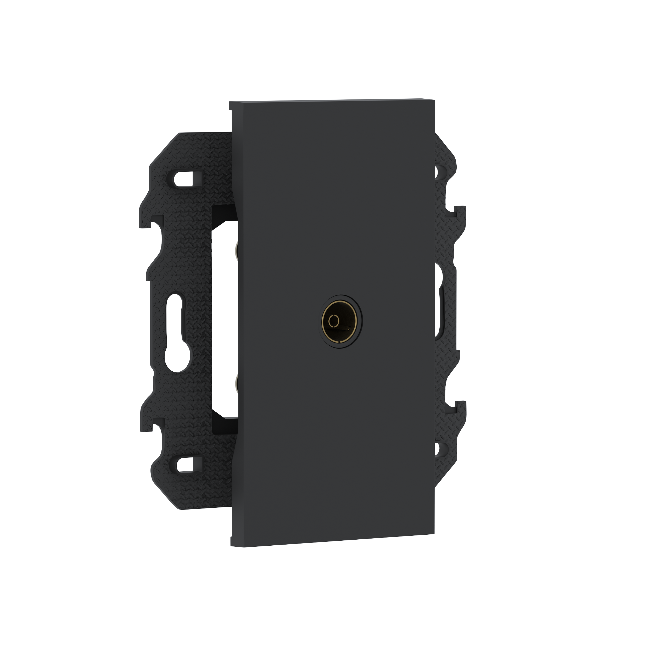 Розетка TV, простая, разъём мама, в сборе с суппортом, цвет чёрный матовый