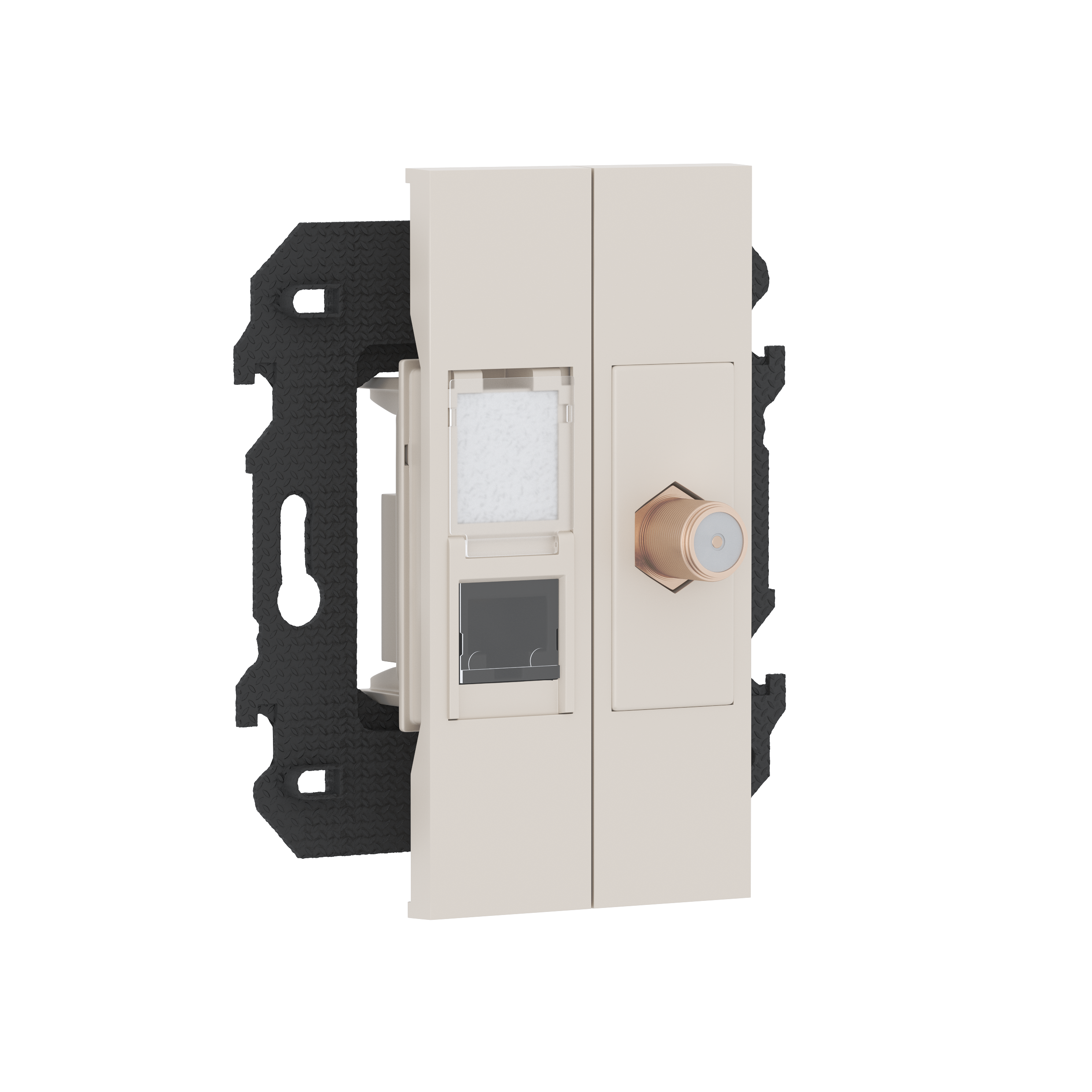 Розетка комбинированная TV/SAT простая с F-разъёмом + компьютерная RJ45 cat6 UTP, в сборе с суппортом, цвет песочный матовый