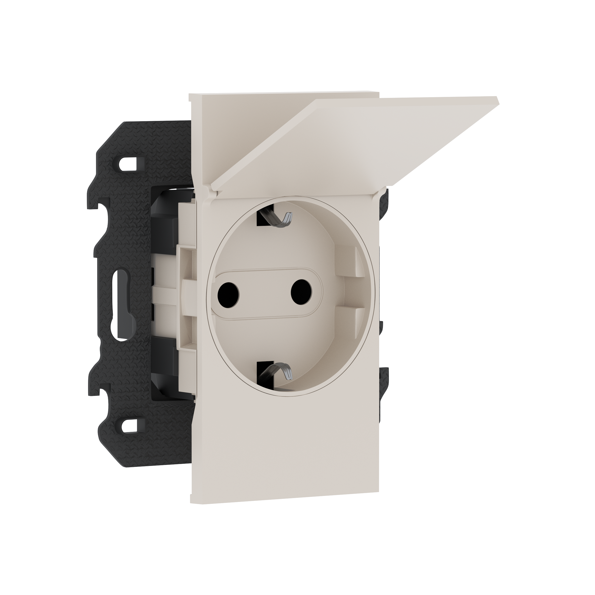 Розетка на 220v с накладкой на 2м, с/з, шторки, с крышкой, 16А, винты, в сборе с суппортом, цвет песочный матовый