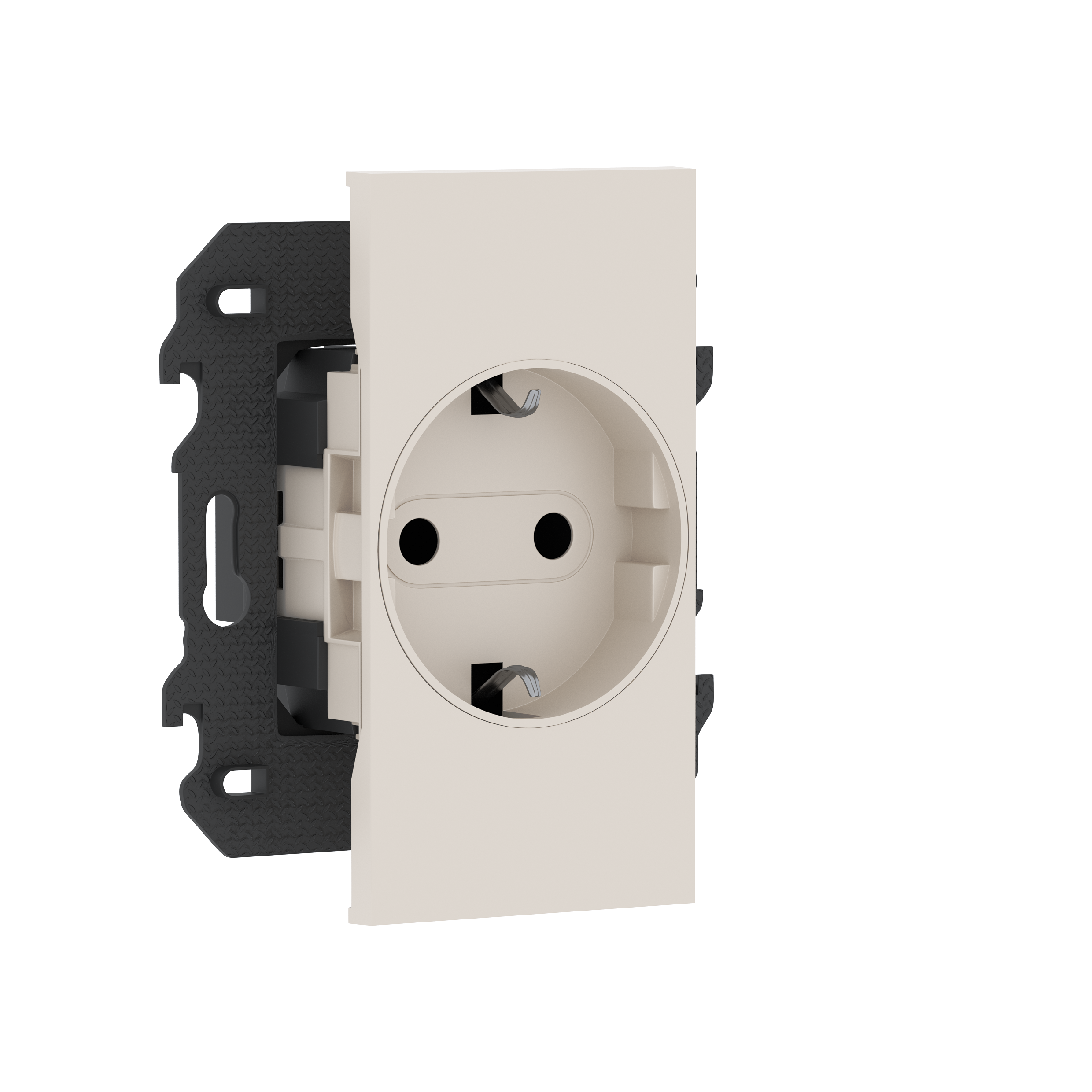 Розетка на 220v с накладкой на 2м, с/з, шторки, 16А, винты, в сборе с суппортом, цвет песочный матовый