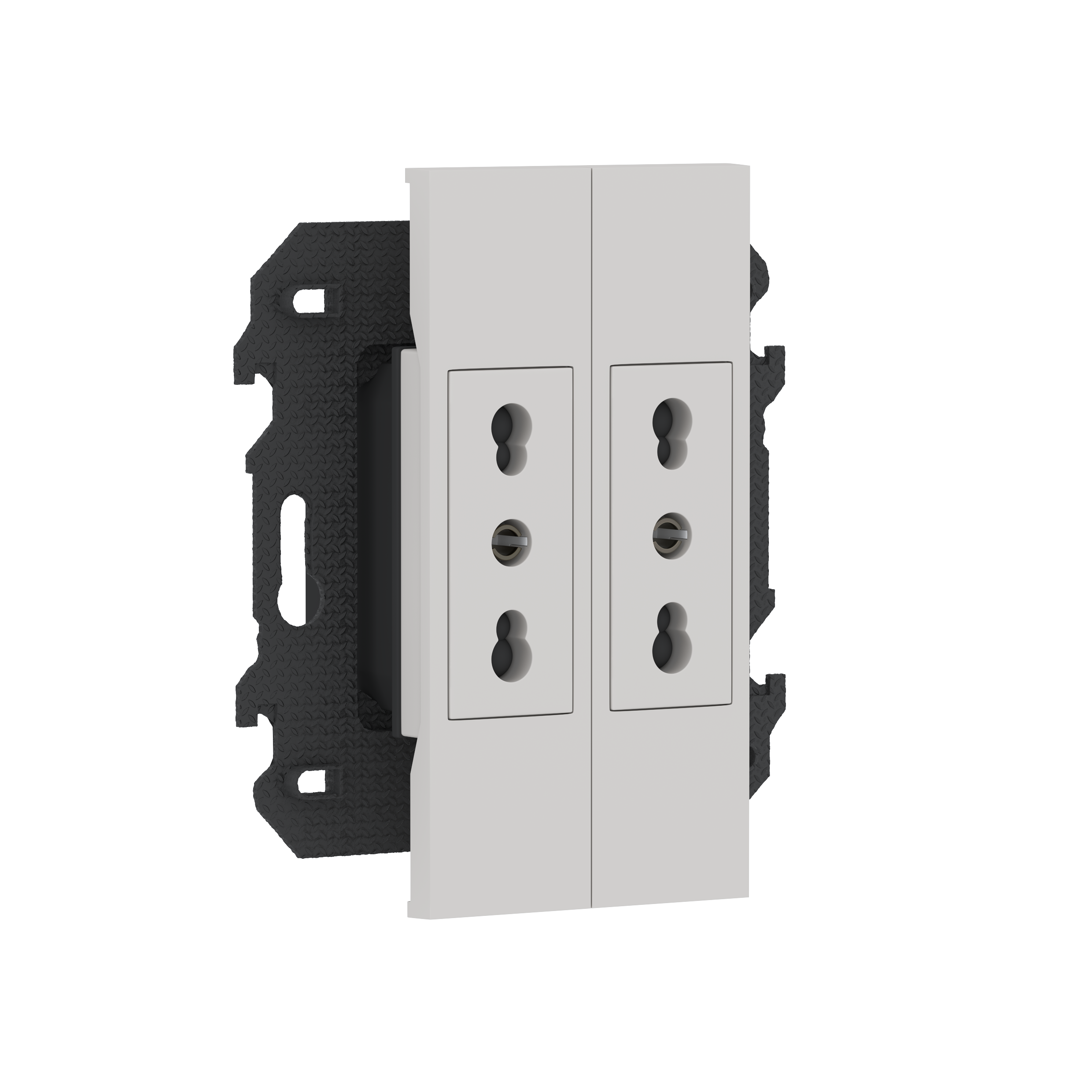 Розетка на 220v для двух узких вилок, без заземления, шторки, 16А, винты, в сборе с суппортом, цвет серый матовый