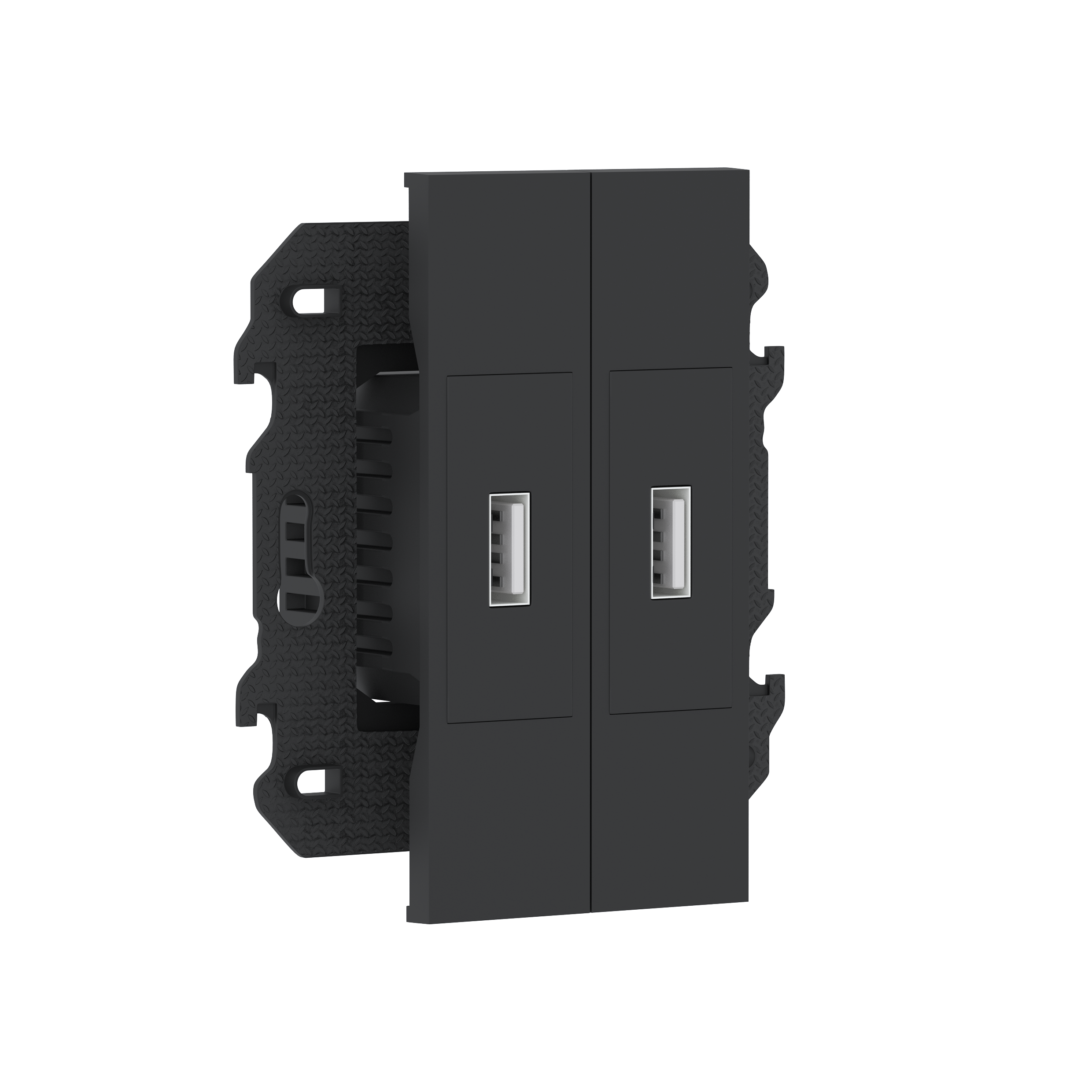 Зарядное устройство USB типа A+A, ток до 2x2100мА, в сборе с суппортом, цвет чёрный матовый