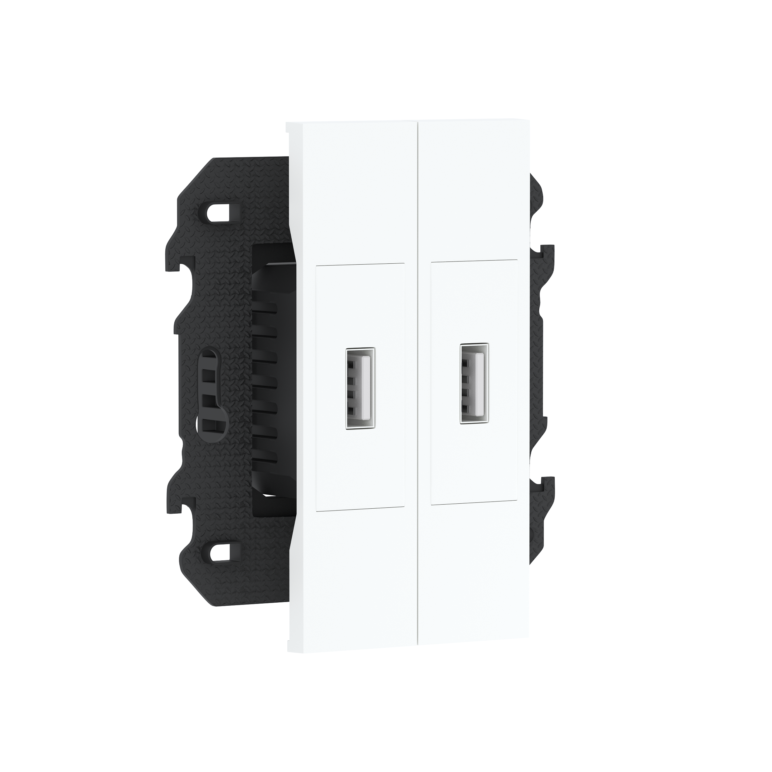 Зарядное устройство USB типа A+A, ток до 2x2100мА, в сборе с суппортом, цвет белый матовый