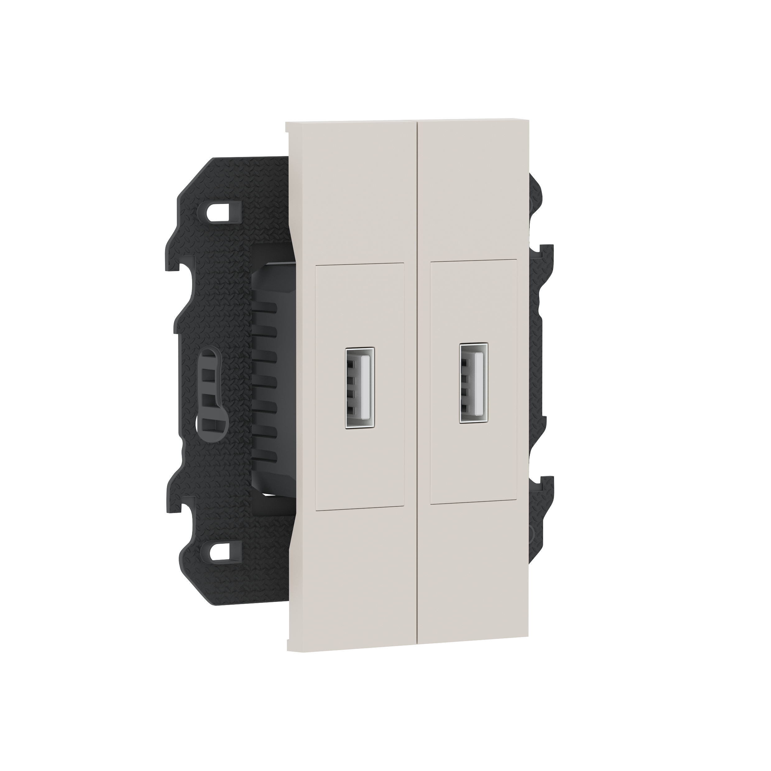 Зарядное устройство USB типа A+A, ток до 2x2100мА, в сборе с суппортом, цвет песочный матовый