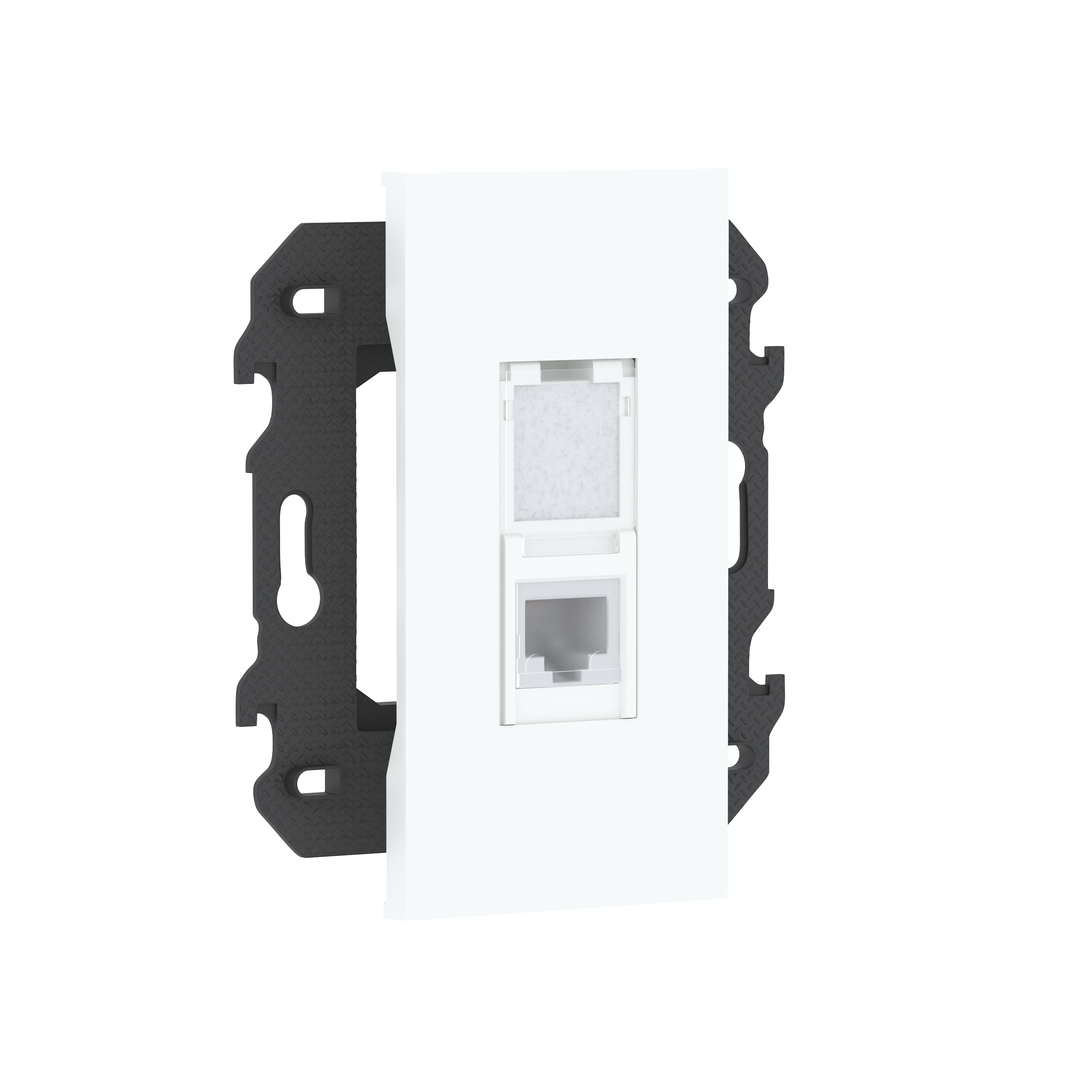 Розетка RJ11 телефонная cat3, 1 порт, в сборе с суппортом, цвет белый матовый