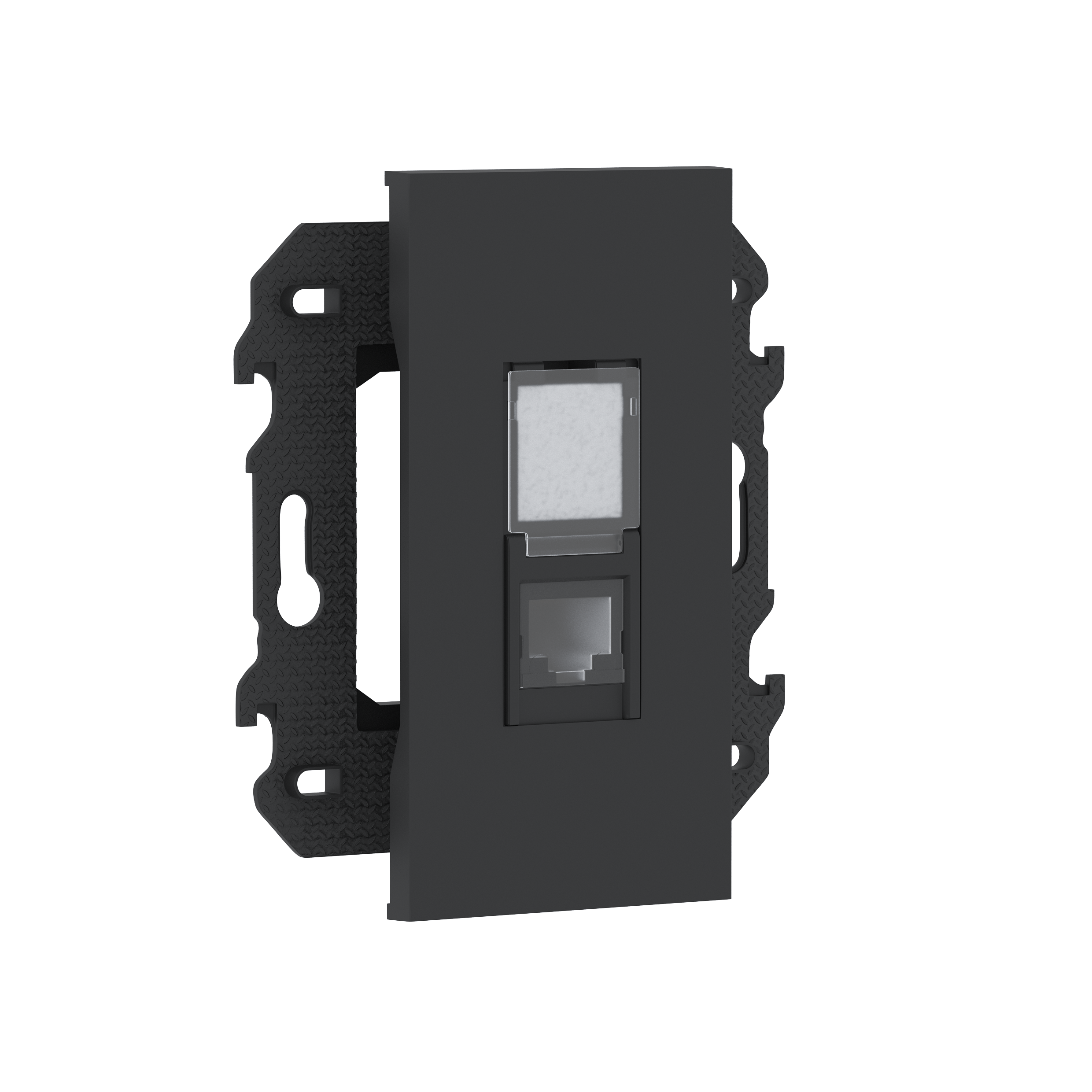 Розетка RJ45 компьютерная cat5e UTP, 1 порт, в сборе с суппортом, цвет чёрный матовый