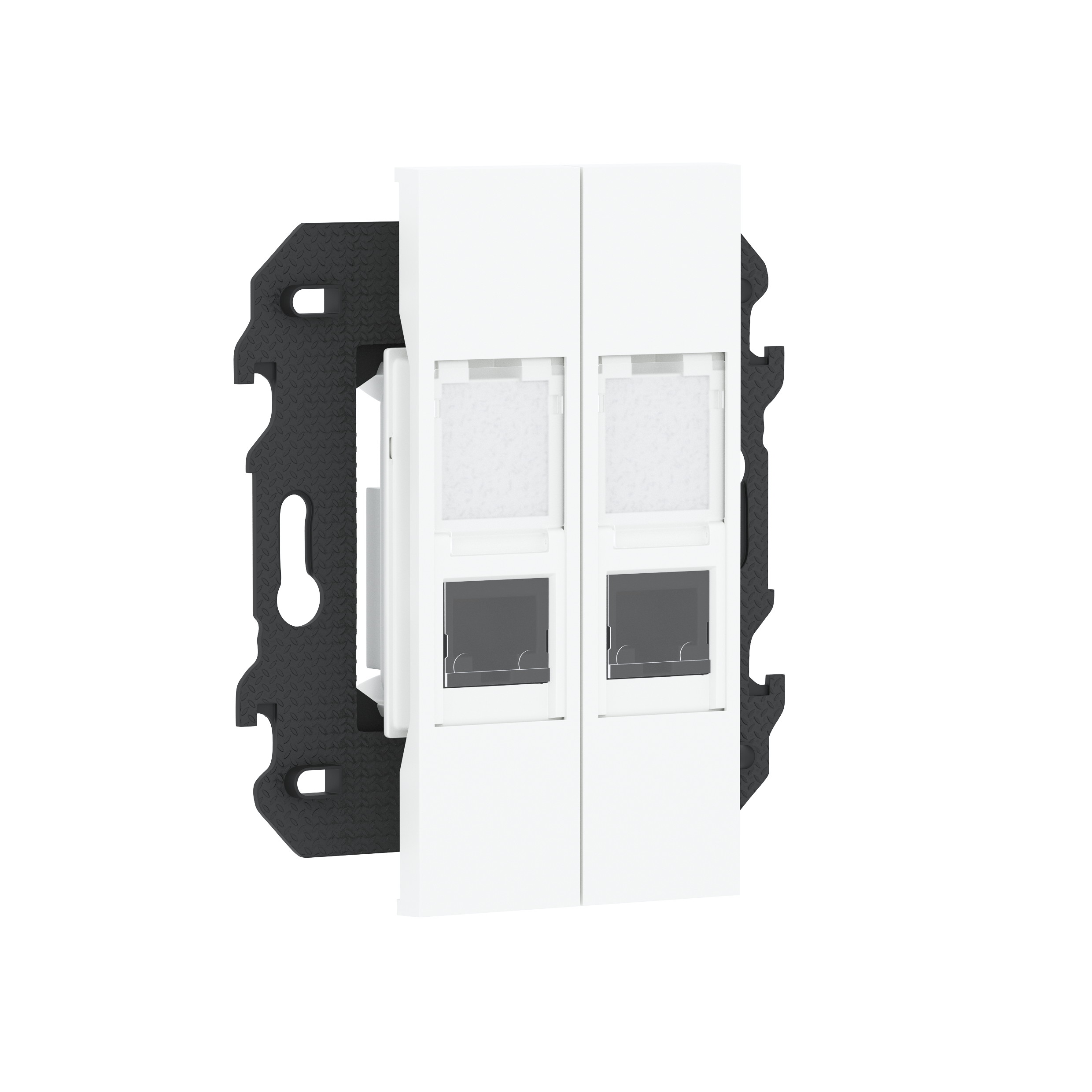 Розетка RJ45 компьютерная cat6 UTP, 2 порта, в сборе с суппортом, цвет белый матовый