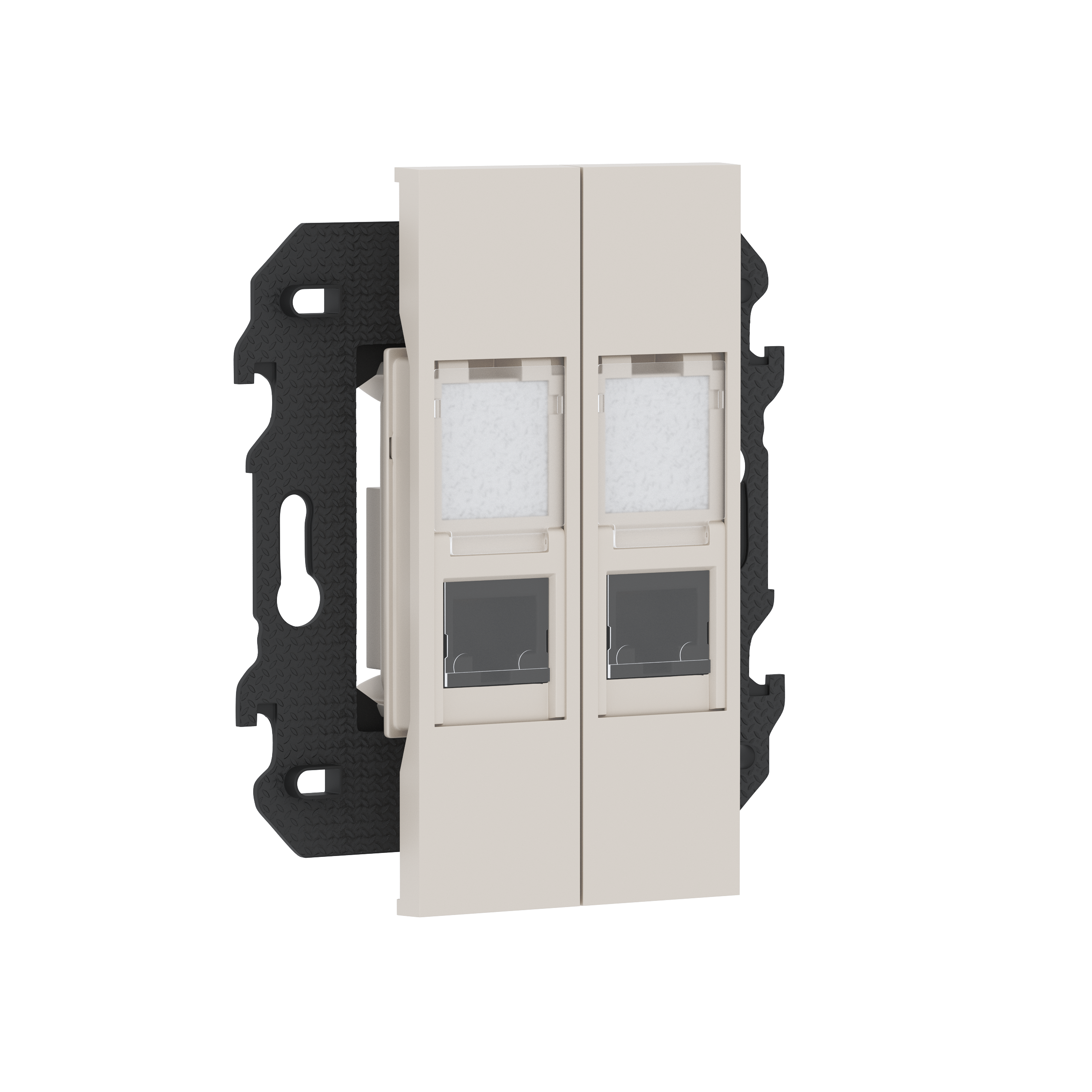 Розетка RJ45 компьютерная cat6 UTP, 2 порта, в сборе с суппортом, цвет песочный матовый