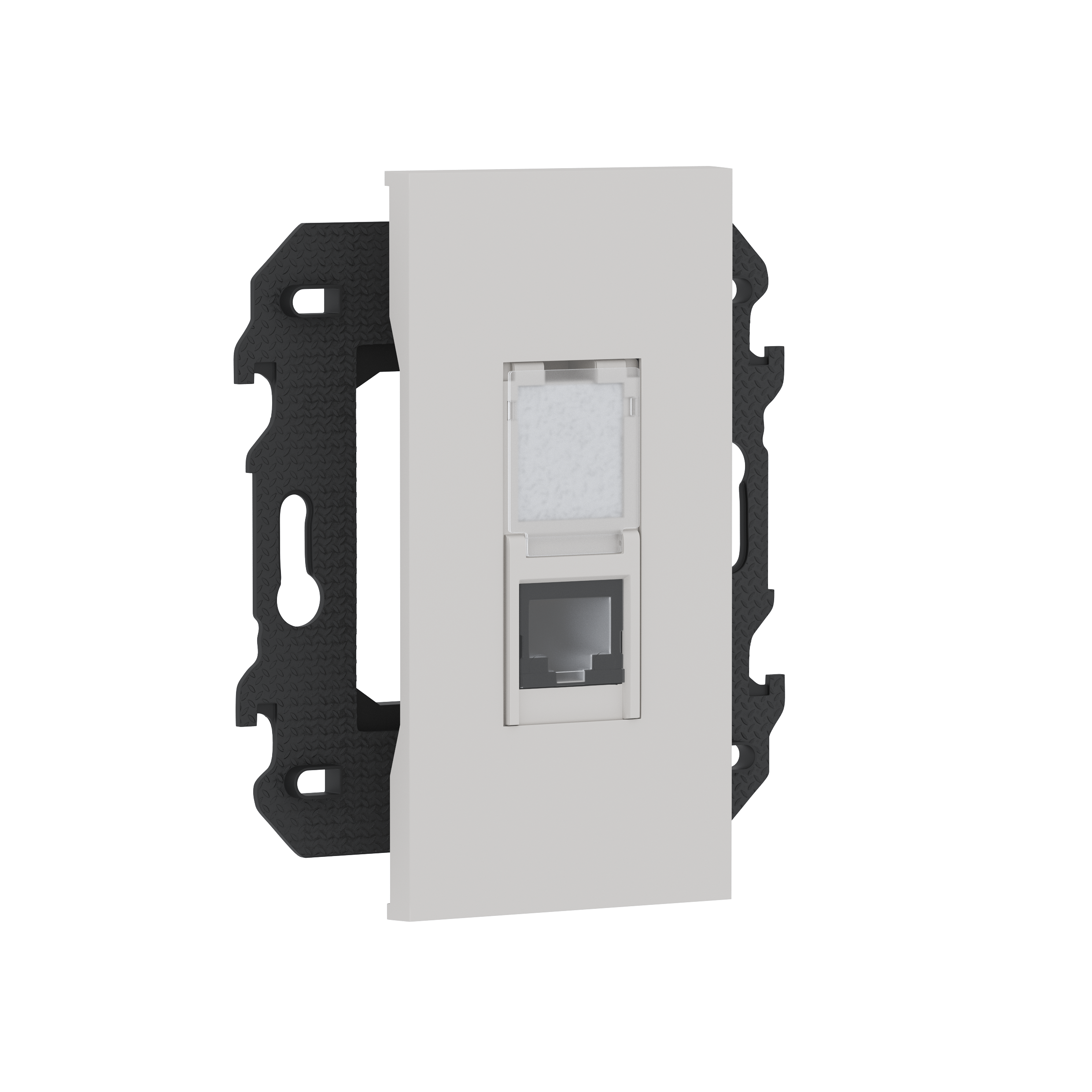 Розетка RJ45 компьютерная cat6 UTP, 1 порт, в сборе с суппортом, цвет серый матовый