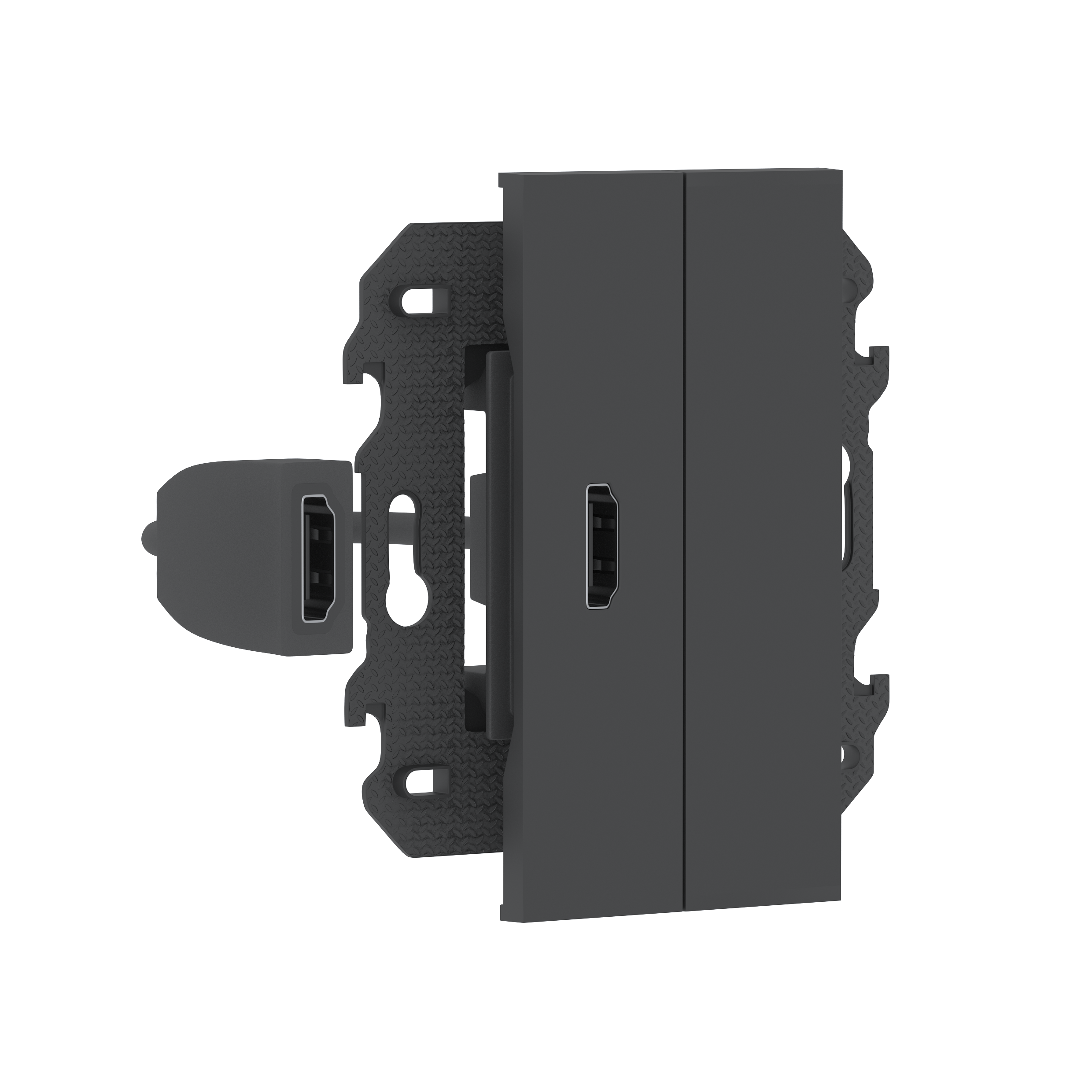 Розетка HDMI с подключённым разъёмом, с дополнительной заглушкой, в сборе с суппортом, цвет чёрный матовый