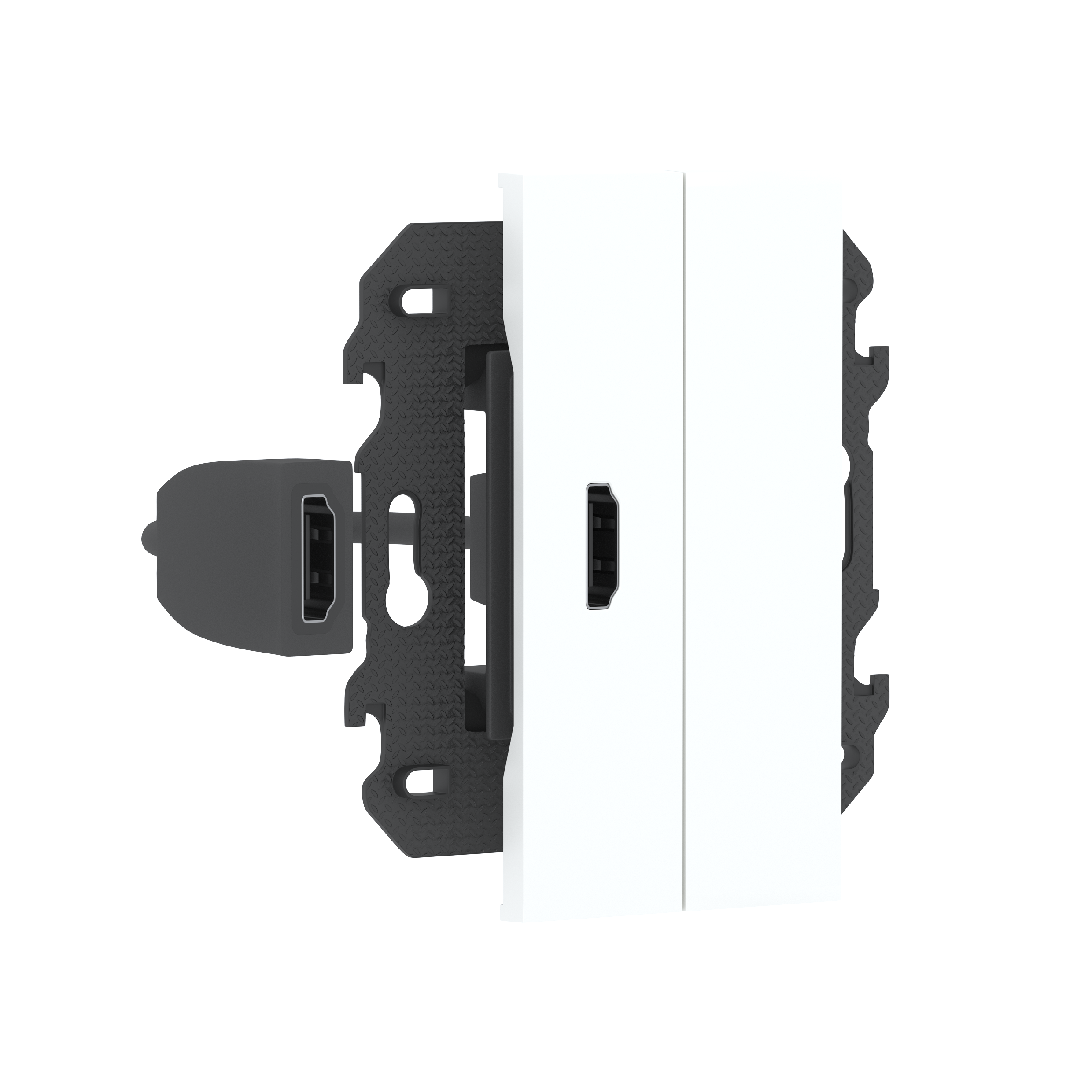Розетка HDMI с подключённым разъёмом, с дополнительной заглушкой, в сборе с суппортом, цвет белый матовый