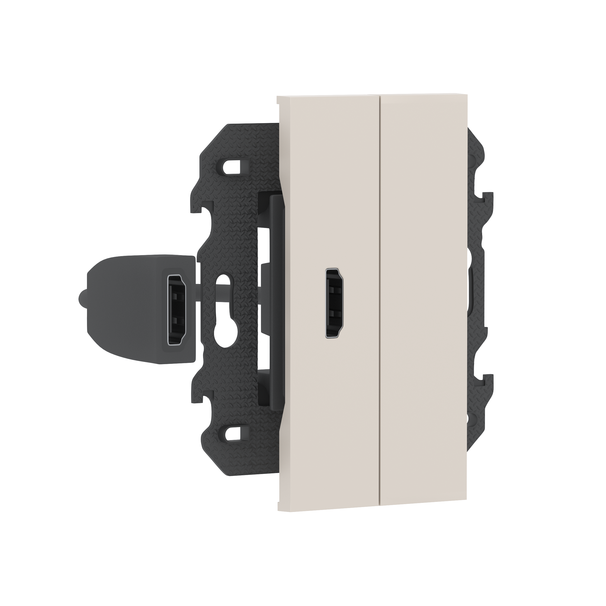 Розетка HDMI с подключённым разъёмом, с дополнительной заглушкой, в сборе с суппортом, цвет песочный матовый