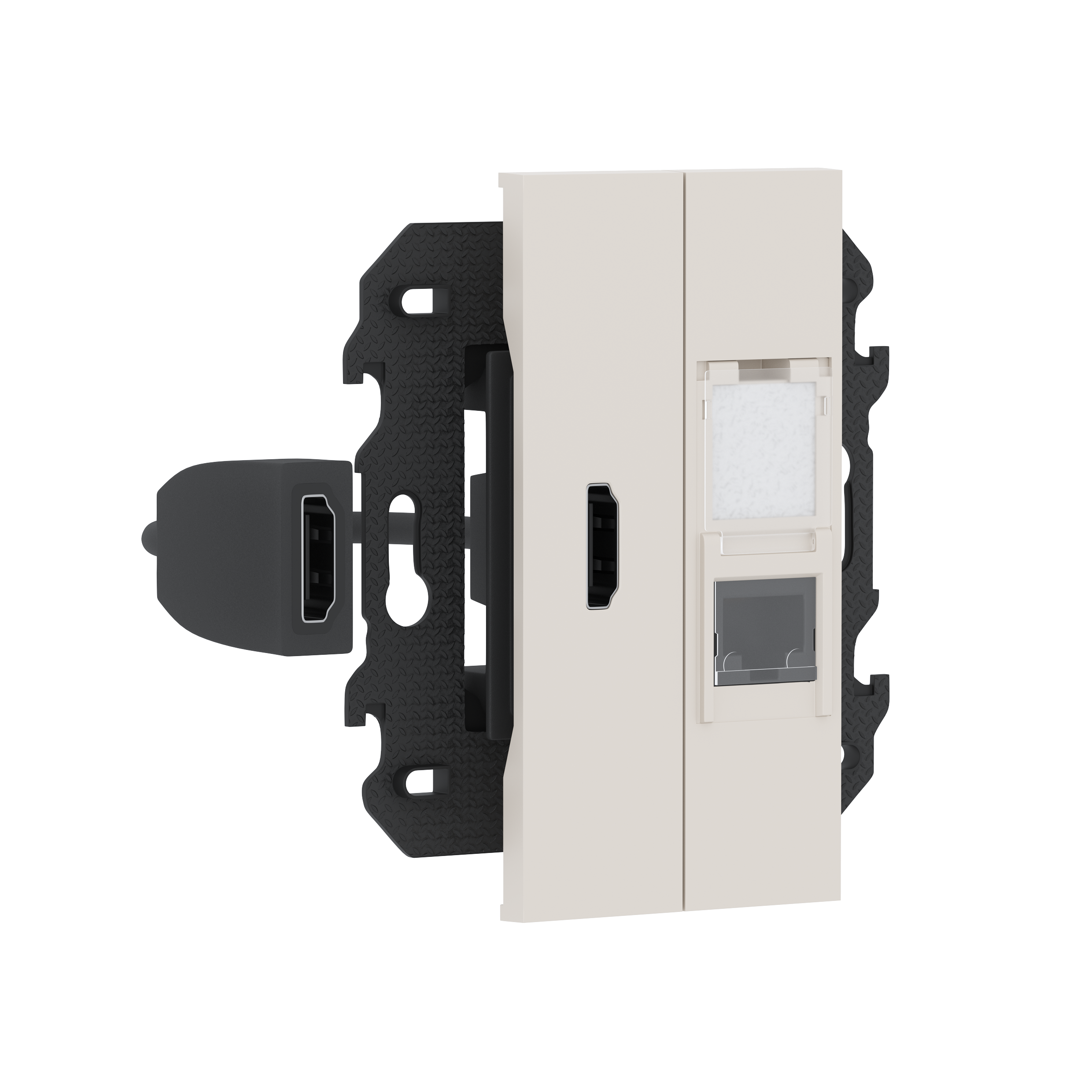 Розетка комбинированная HDMI с подключённым разъёмом + компьютерная RJ45 cat6 UTP, в сборе с суппортом, цвет песочный матовый