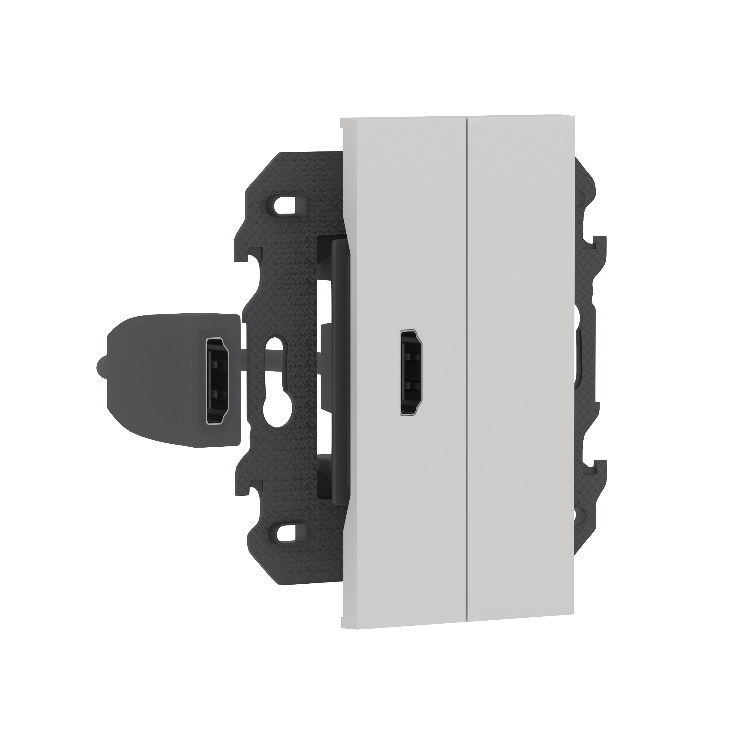 Розетка HDMI с подключённым разъёмом, с дополнительной заглушкой, в сборе с суппортом, цвет серый матовый
