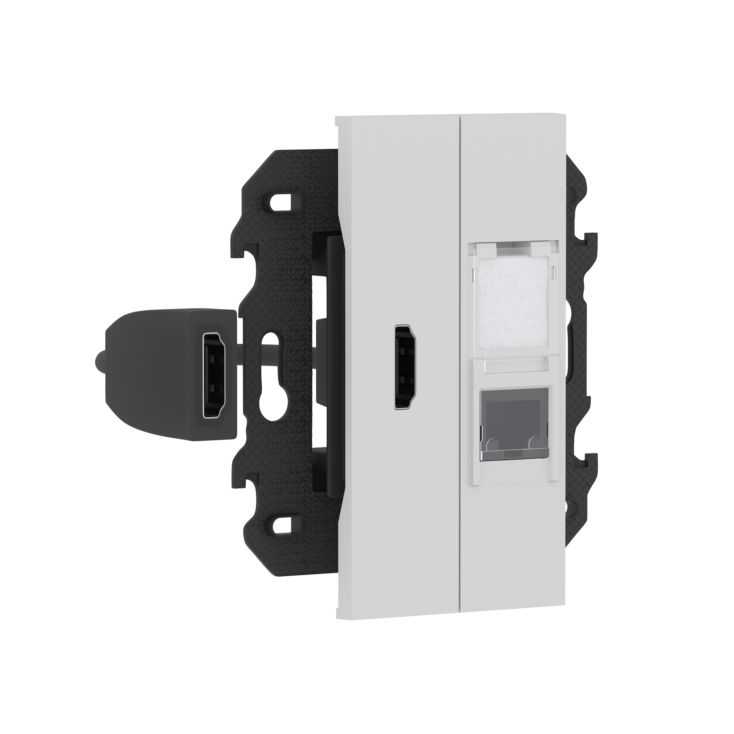 Розетка комбинированная HDMI с подключённым разъёмом + компьютерная RJ45 cat6 UTP, в сборе с суппортом, цвет серый матовый