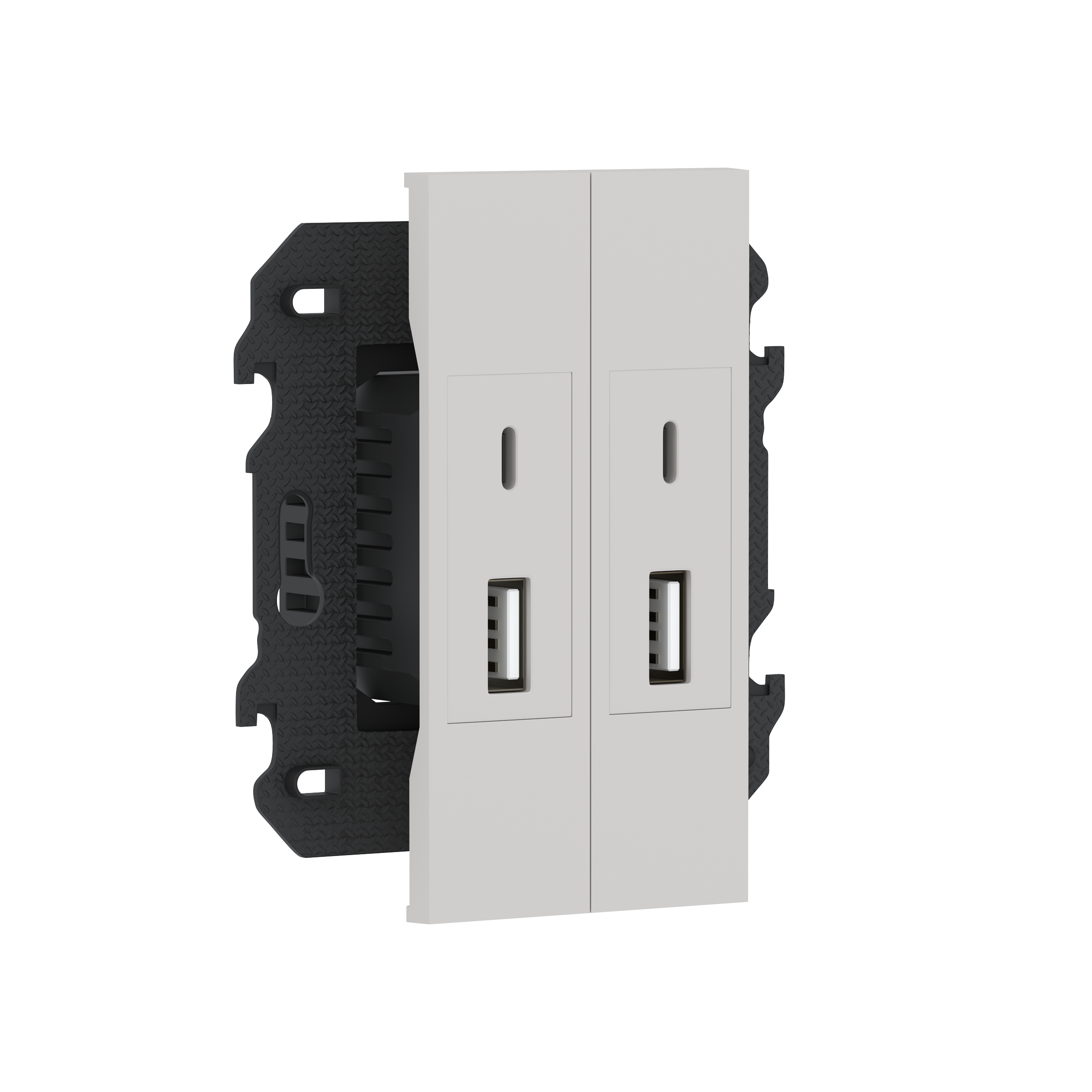 Зарядное устройство USB типа A+C+A+C, ток до 2x3100мА, в сборе с суппортом, цвет серый матовый