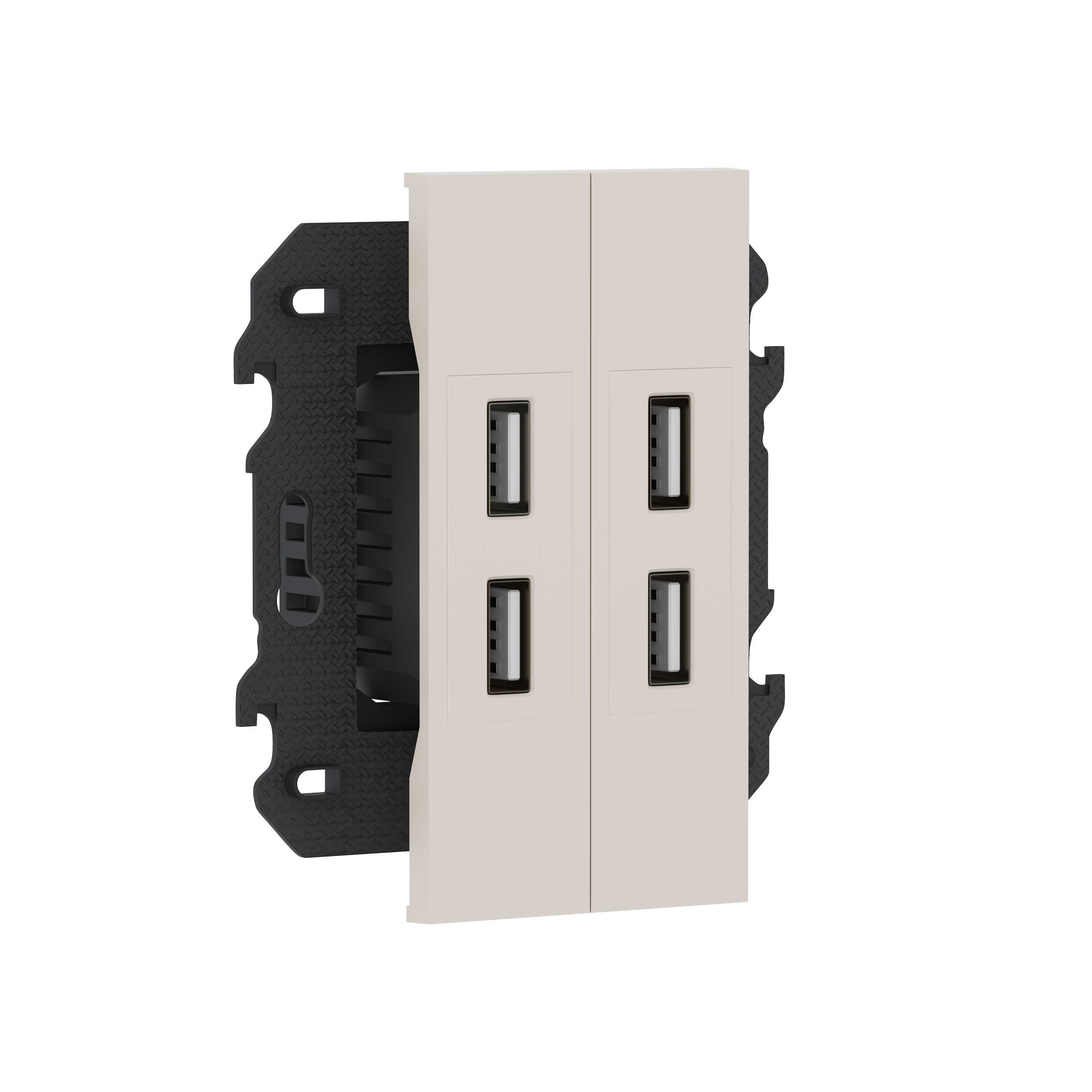 Зарядное устройство USB типа A+A+A+A, ток до 2x2100мА, в сборе с суппортом, цвет песочный матовый