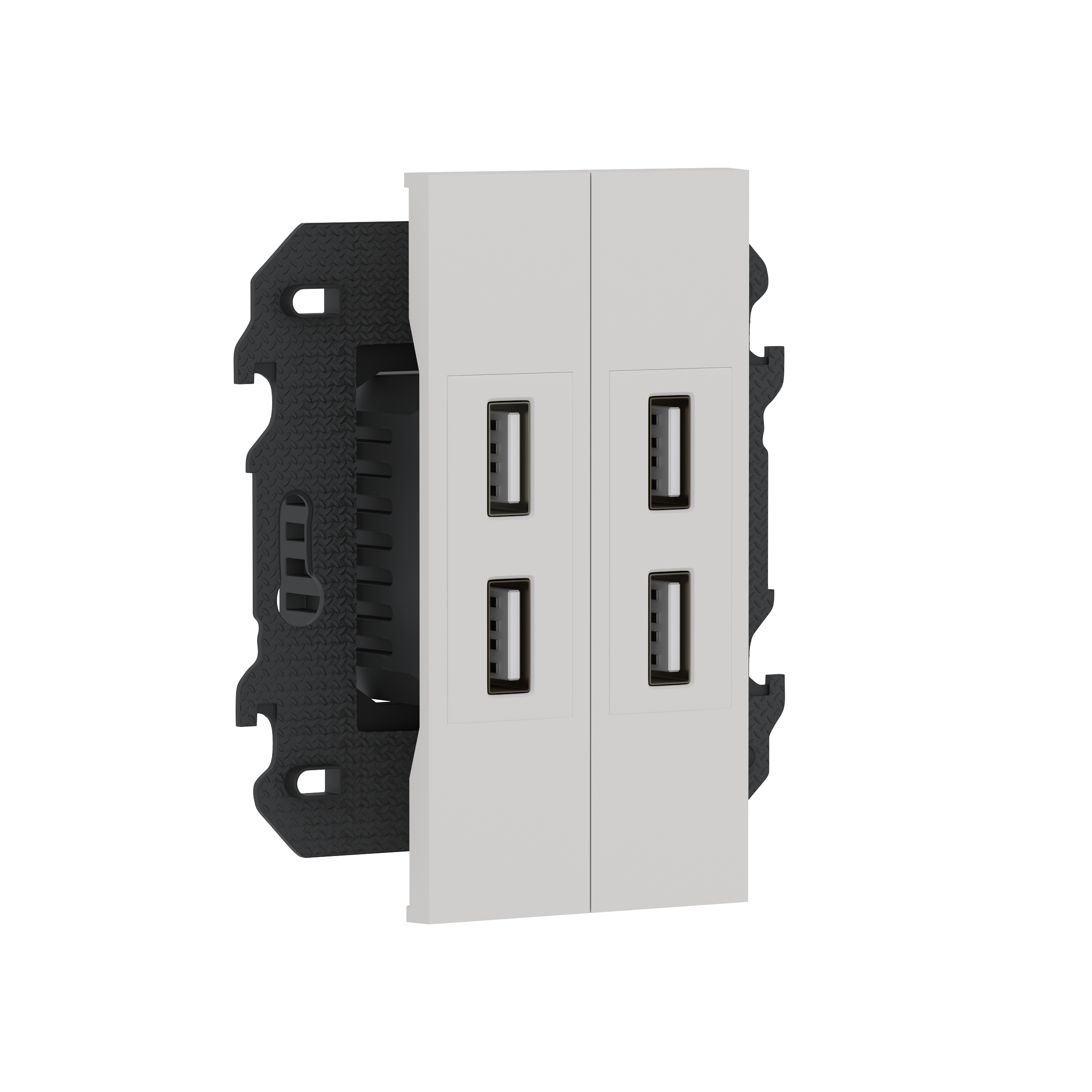 Зарядное устройство USB типа A+A+A+A, ток до 2x2100мА, в сборе с суппортом, цвет серый матовый