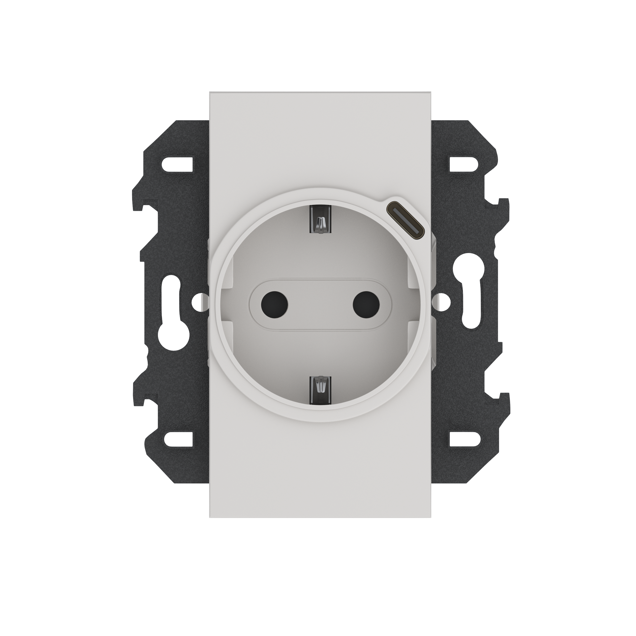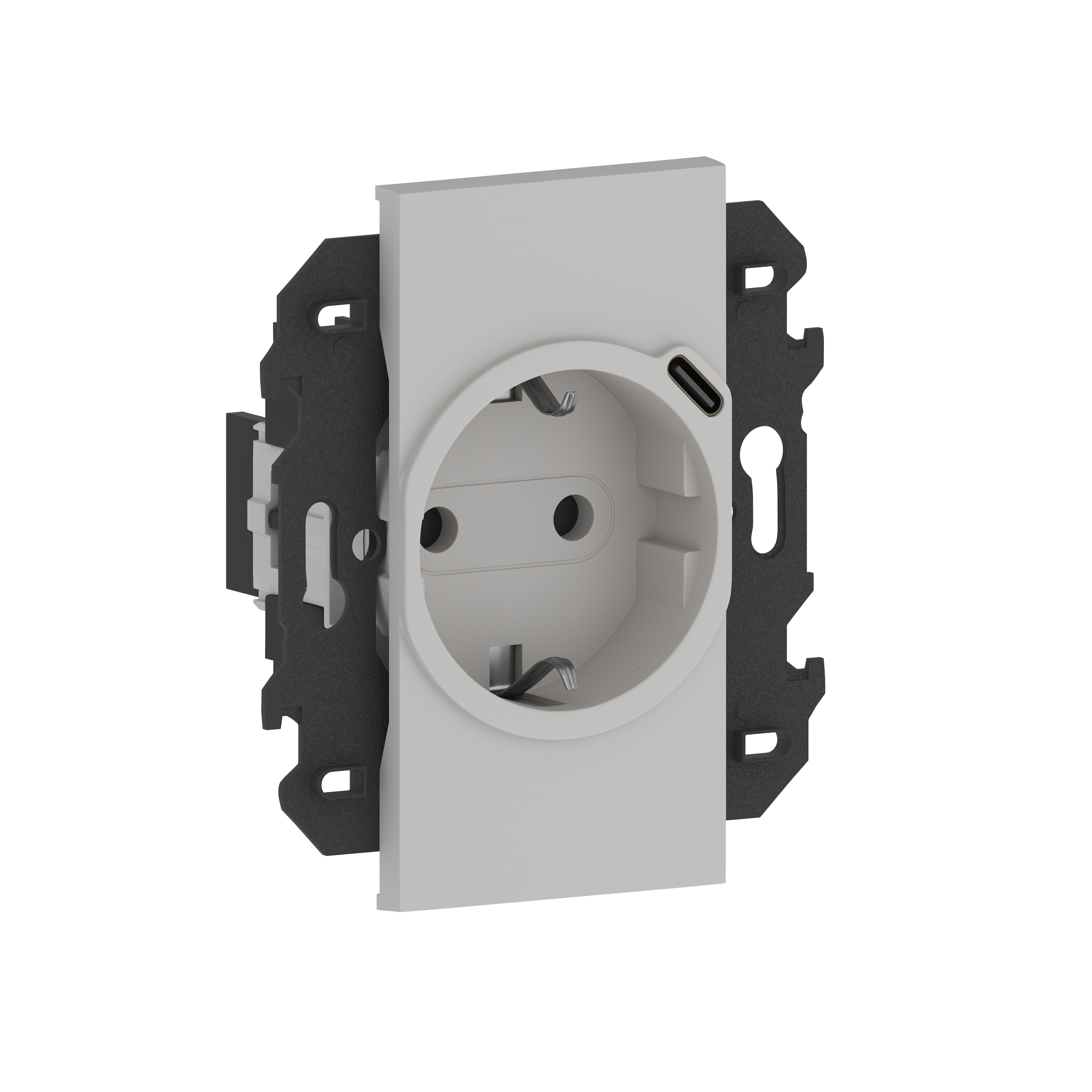 Розетка на 220v + USB типа С, с накладкой на 2м, с/з, шторки, 16А, в сборе с суппортом, винты, цвет серый